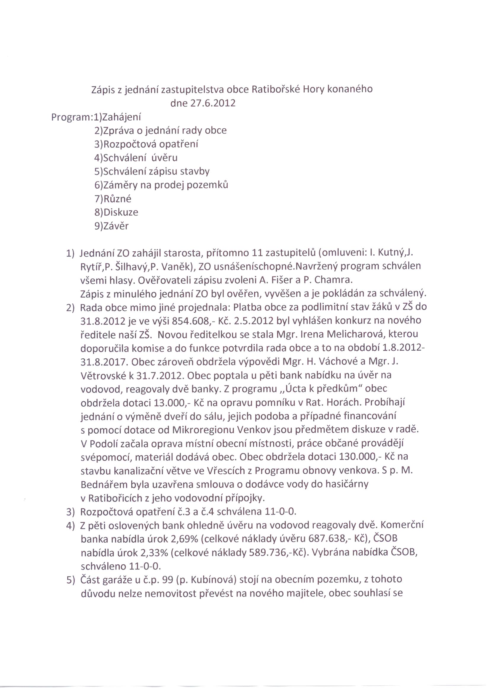 Zápis z jednání ZO dne 27.6.2012