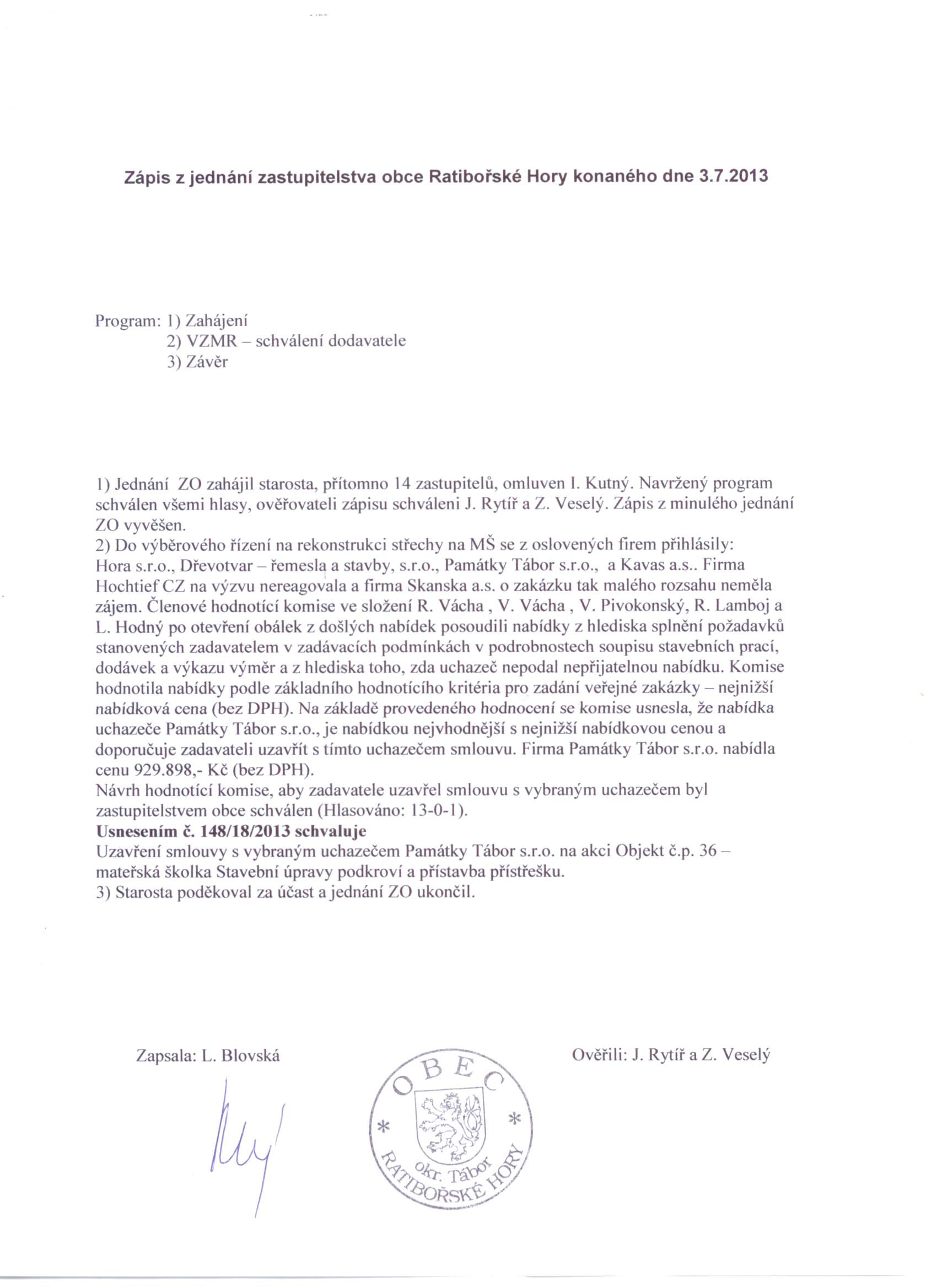 Zápis z jednání ZO dne 3.7.2013
